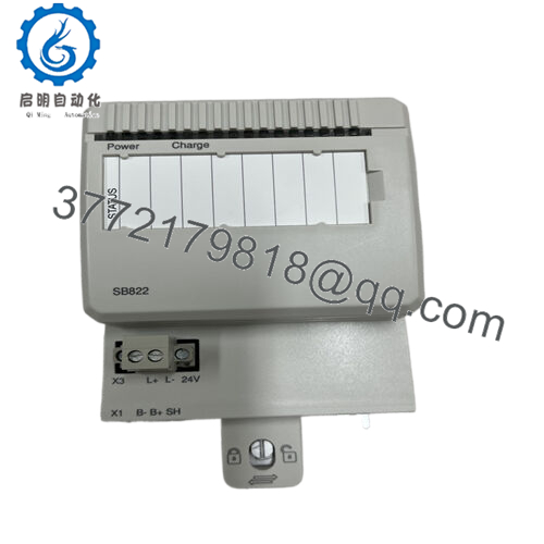 The ABB SB822 is a rechargeable lithium-ion battery unit designed as an external backup power source for ABB’s AC 800M controllers and other system 800xA components. It is engineered to provide 3.6 V output and supports a maximum output current of 0.05 A, delivering stable power during short-term power supply interruptions to prevent controller resets or unsafe conditions.