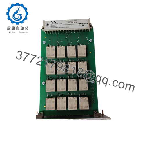 The Emerson A6740 stands out with its versatility and robust design. It accepts control voltages from 13 to 32 V DC and supports contact loads up to 48 V and 1 Ampere per relay channel. Relays are single-pole double-throw (SPDT) and can be configured as normally open or normally closed, and energized or non-energized. The module supports configurable redundancy in relay outputs to enhance system dependability. It operates reliably in industrial environmental conditions with temperature ratings from 0 to 65 °C and storage from -40 to 70 °C. The module is vibration and shock resistant, compliant with EMC standards, and designed for protection up to IP20. Easy removal and replacement of the card facilitate maintenance and module identification during servicing.